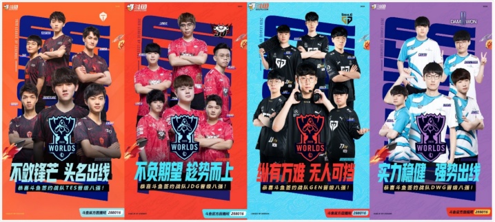 为了丰富观众们的电竞内容体验,斗鱼不仅获得了LPL、KPL、英雄联盟全球总决赛、CFPL等诸多大型赛事版权外,还签下LGD、JDG、TES、GEN、DWG等诸多国内外知名电竞俱乐部。其中,LGD、JDG和TES三支代表LPL赛区出征的战队几乎覆盖了国内所有的电竞粉丝,JDG、TES、GEN和DWG四支战队更是成功杀入了赛事八强。