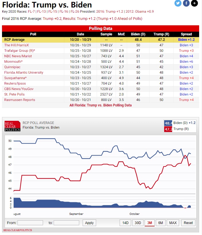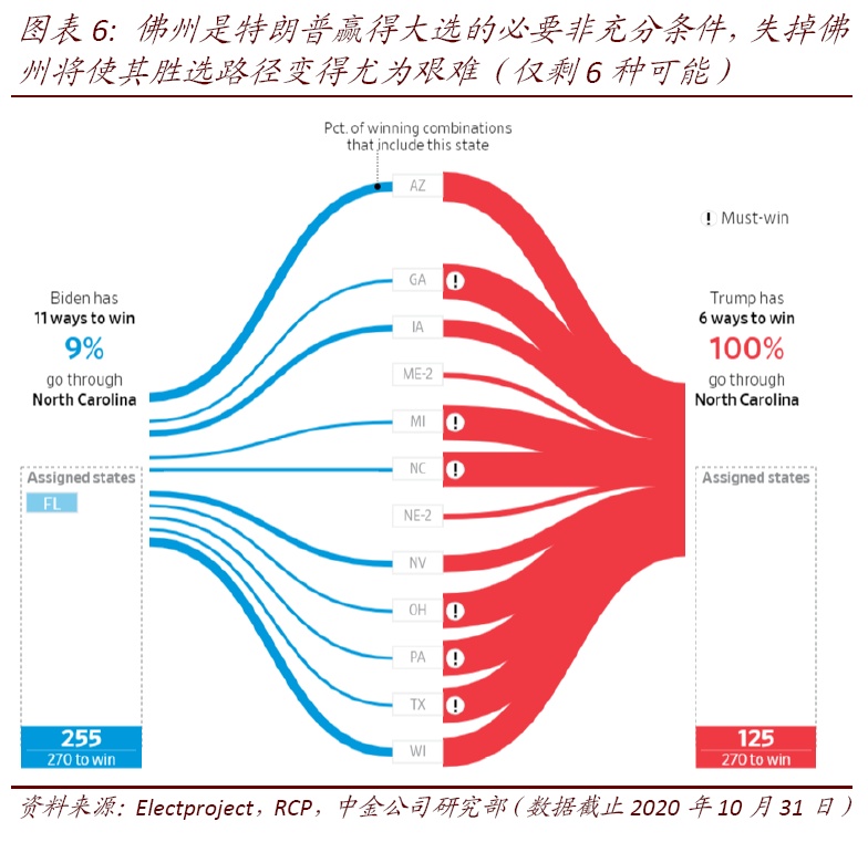 iv. 关键仍在佛罗里达。不出意外的是,作为传统摇摆州的佛罗里达仍将是此次大选中的重中之重,由于其结果出炉很早,佛罗里达走向将是最终结果以及结果何时出炉的一个关键风向标。