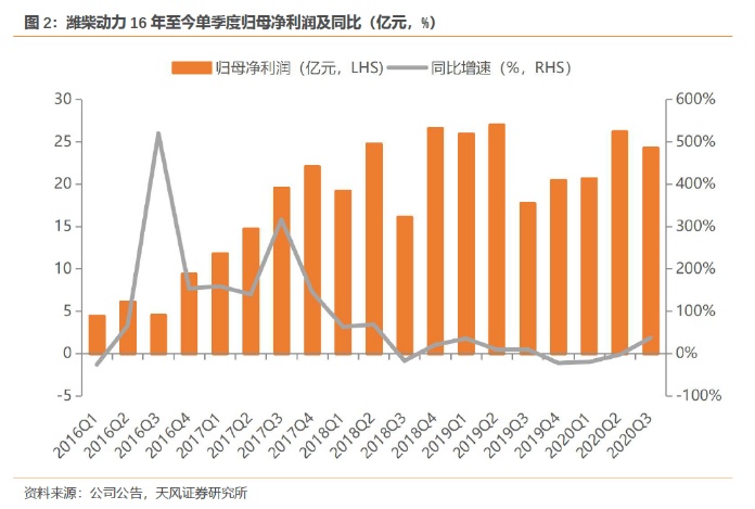 发动机板块业务盈利水平大幅回升。受益于重卡行业高景气,潍柴营收利润Q3均大幅增长。更能反映发动机业务盈利能力的母公司报表,20Q3毛利率为24.9%,环比20Q2的20.9%大幅提升了4个百分点。我们认为这主要得益于公司通过经营改善和研发,很好地应对了贵金属涨价带来的发动机产品的毛利率压力。20Q3母公司报表“净利润-投资收益”为15.8亿,同比大幅增长57%。