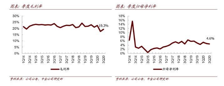 3Q20母公司毛利率恢复至24.9%,环比+4ppt,我们认为主要由更低成本的天然气发动机投入使用及机型结构变化带动,随着成本更低的天然气发动机在4Q20投入使用,母公司毛利率仍有提升空间。3Q20公允价值变动损失3.52亿元,据公司披露主要由交叉货币互换工具损失增加所致,我们认为公允价值变动为浮动盈亏,不影响公司实际经营或现金流,可以将影响部分加回归母净利润计算同比数字,估算得3Q20调整后净利润同比增速约为69%。