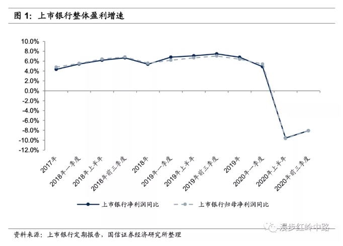 2020年三季报行业净利润增速略有回升,符合市场普遍预期。上市银行整体(指十六家老上市银行及上海银行、江苏银行、杭州银行、贵阳银行共20家银行的合计值,下同)2020年三季报净利润同比下降8.1%,归母净利润同比下降8.1%。我们后续着重观察关键驱动因素的实质性变动,而非净利润增速的账面数字。