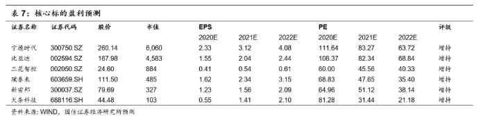 电池中游环节:重点推荐受益于锂电全球供应链机会标的以及锂电池优质龙头企业:宁德时代、国轩高科、璞泰来、新宙邦、亿纬锂能等。