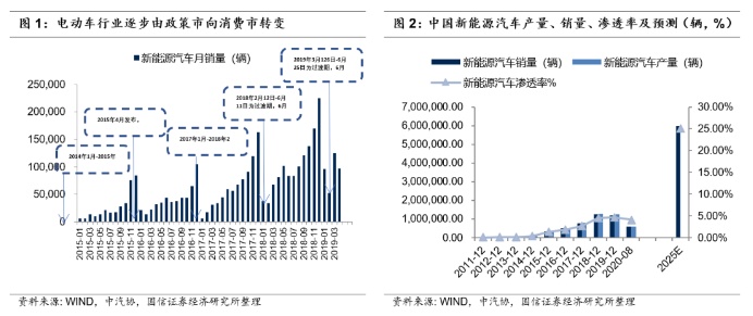我国电动车行业正逐步从政策市场向消费市场转变,本质是新能源汽车现象级产品频现。自我国实施新能源汽车财政补贴政策以来新能源汽车行业的波动性与补贴政策出台以及实施周期基本吻合,过去行业主要的驱动力仍在于传统限牌、限行和营运等刚性需求与新车型带来的纯市场需求的叠加,同时叠加对新补贴政策预期的提前布局。伴随财政补贴政策逐步退出以及纯消费市场的兴起,预计行业政策周期性波动将会逐步减弱。