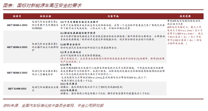 整车维度:新能源车具备高压属性,要求在故障、事故及人员操作过程保障安全