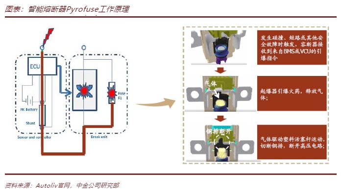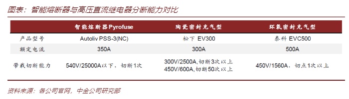 我们结论:智能熔断器Pyrofuse因用户经济性、不具备开关功能等问题,难以替代高压直流继电器在新能源车的应用;但Pyrofuse可降低对高压直流继电器高性能的需求,使低成本方案应用成为可能。