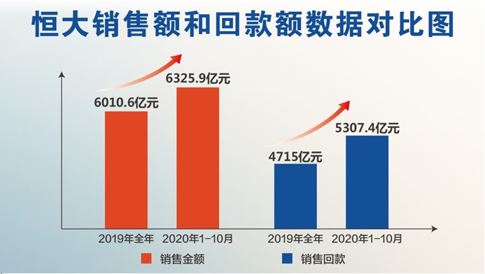 今年中国恒大(03333)的业绩表现相当抢眼。据恒大11月3日公告,前10月累计销售6325.9亿元,已超过去年全年6010.6亿元的销售额;累计销售回款5307.4亿元,已大幅超过去年全年4715亿的销售回款额,均创历史新高。