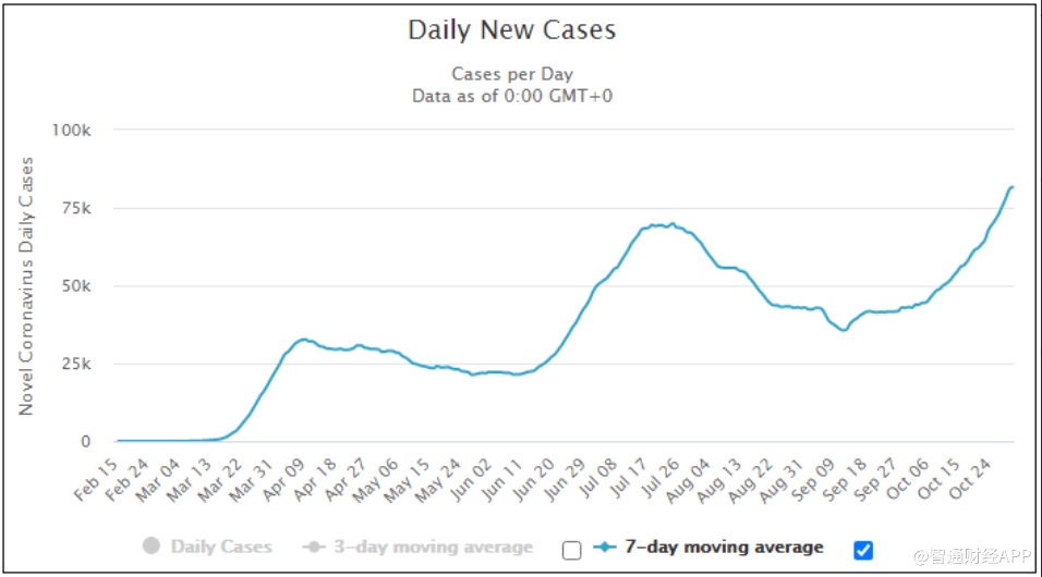 海外公共卫生事件再次爆发,欧洲几个主要国家已经宣布了封锁。随着美国病例的激增,美国也可能会实施封锁措施。分析师认为,随着气温刚刚开始下降,疫苗可能在几个月后才能对大规模人群有效,严冬即将来临。