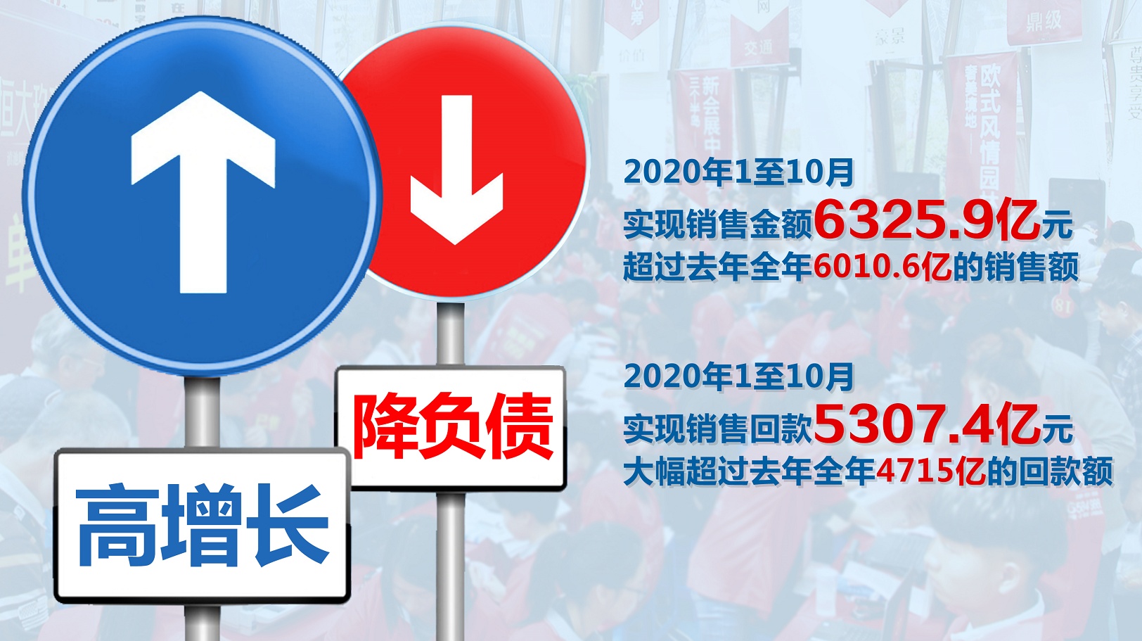 据公告显示,9-10月,恒大实现销售回款1358.5亿元,前10月累计实现销售回款5307.4亿元,已大幅超过去年全年4715亿的销售回款额,创下公司有史以来最高纪录。