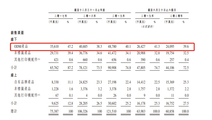 公司自二零一七年至二零二零年六月三十日的前六个月,公司的ODM产品收入分别为3561万美元、4068.5万美元、4878万美元以及2409.5万美元。