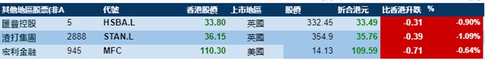 大型蓝筹普遍上涨,汇丰控股收报33.30港元,较港收市跌1.47%;腾讯控股收报610.46港元,较港收市涨3.73%。
