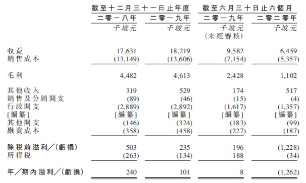 截至2018年及2019年12月31日止年度以及截至2019年6月30日止6个月的净利润约为24万坡元、10.1万坡元及8000坡元,而截至2020年6月30日止6个月,净亏损约为126.2万坡元。