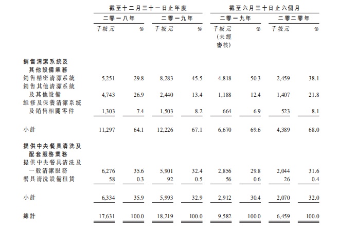 佳益净科的客户来自各行各业(包括HDD制造、半导体制造、餐饮及公共交通)。清洁系统及其他设备主要于新加坡及马来西亚销售,佳益净科向新加坡客户提供中央餐具清洗及配套服务。截至2018年及2019年12月31日止年度及截至2020年6月30日止六个月,五大客户分别占总收益的约68.7%、68.5%及83.9%。