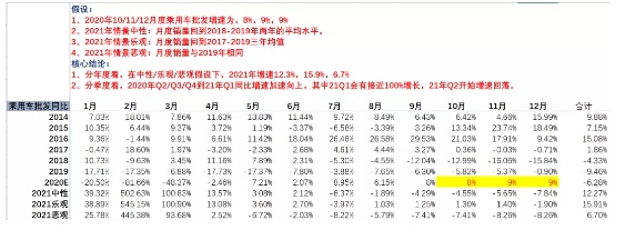 20年一季度是42%的下滑,二季度正增长2%,三季度增长回升至7.7%左右。四季度我们判断会有8.7%左右的增长,而明年一季度行业销量增速会同比翻倍。如果明年下半年的行情恢复比我们想更好的话,下半年也会表现更好。因此从季度看后面逐季度销量增速加速向上。