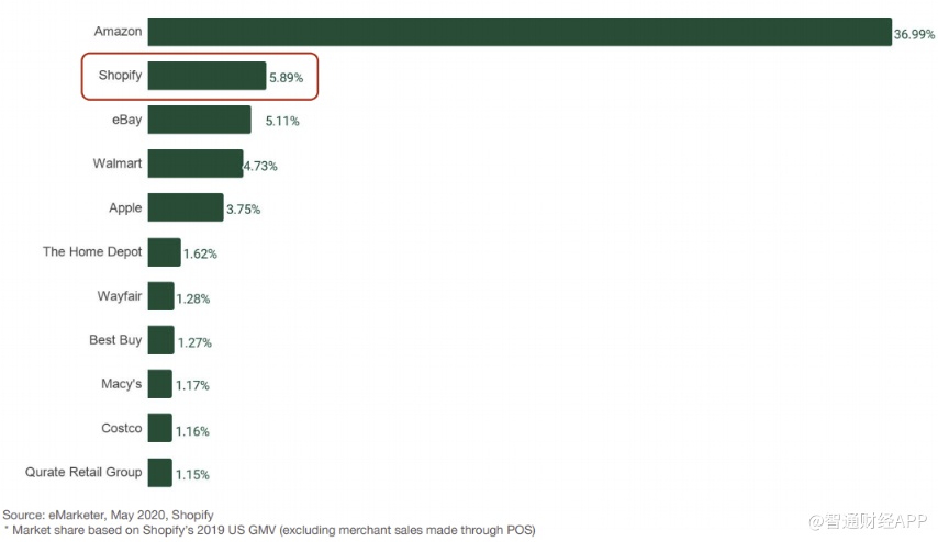 汇集所有使用Shopify平台的商家的销售数据,Shopify将成为美国第二大电子商务平台: