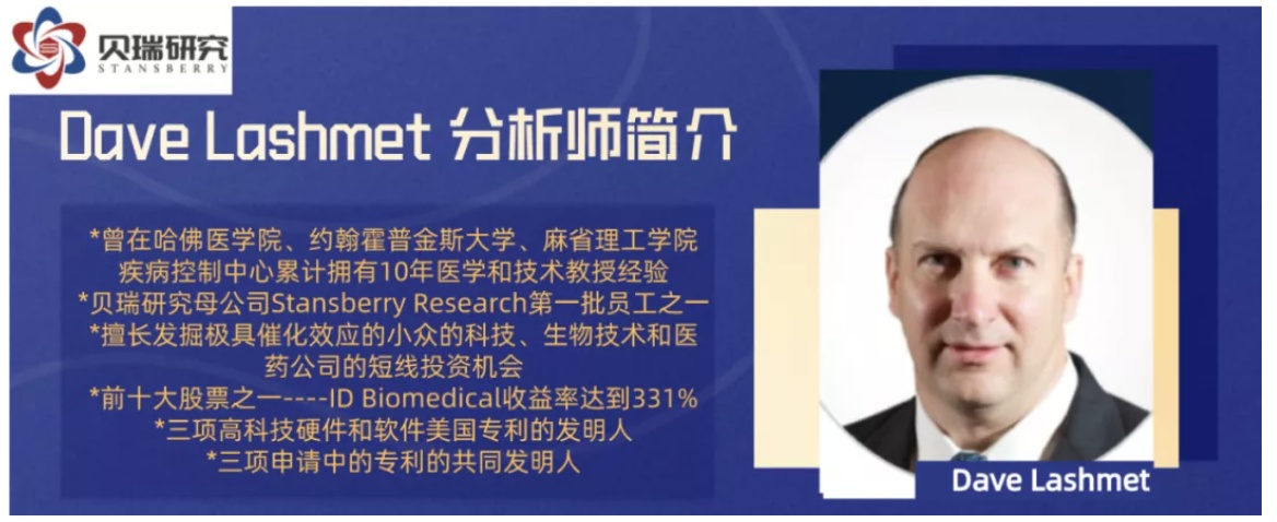 本报告的分析师Dave Lashmet 在生物医药领域的研究经验已经达20年,其作为贝瑞研究总部高级分析师擅长发掘几句催化效应的小众科技、生物技术和医药公司的投资机会。