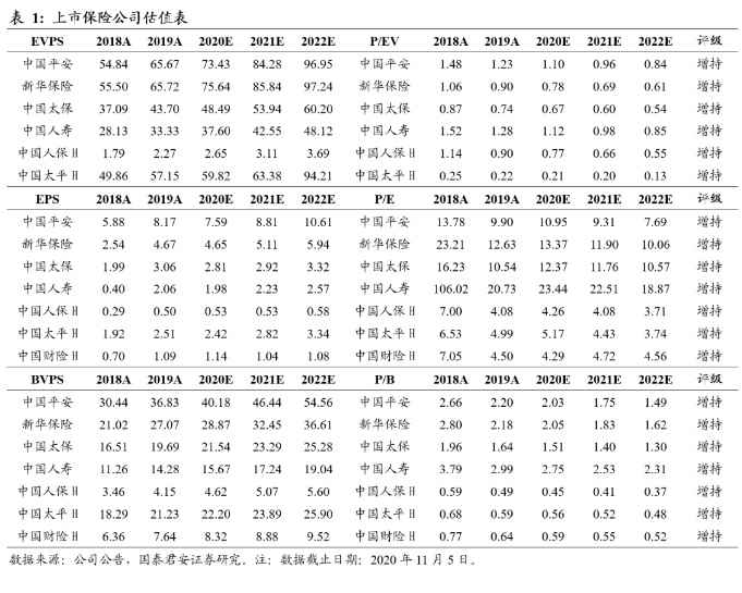 新老重疾定义切换恰逢开门红,预计产品多元化将推动重疾险新单超预期:监管明确旧产品将于2021年1月31日停售,当前保险公司尚有三个月过渡期准备推出符合新定义的重疾险产品。考虑到部分上市险企已计划于12月启动开门红第二阶段重疾险产品的销售,预计开门红期间上市险企将兼顾销售新老定义重疾险产品,产品种类更加丰富多元有利于满足更多客户的差异化需求,从而推动开门红新单增速超预期。