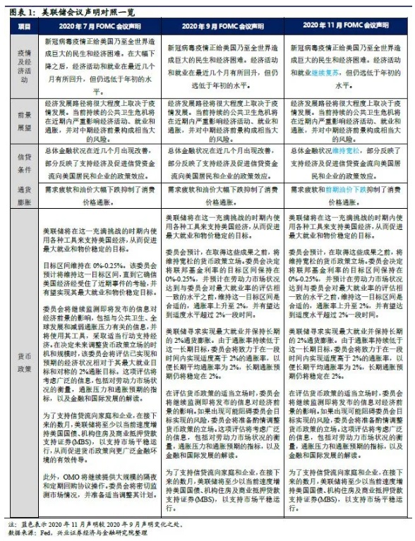 联储维持利率不变,符合市场预期。美联储宣布将基准利率维持在0%-0.25%区间不变,与此同时将超额准备金利率维持在0.1%不变,符合市场预期。此外,联储未改变有关购债节奏的表述,重申“将至少以当前速度增持美国国债、机构住房及商业抵押贷款支持证券(MBS)”、“将使用各种工具来支持美国经济”。此前联储曾多次表态将维持货币宽松,市场对此已有预期。