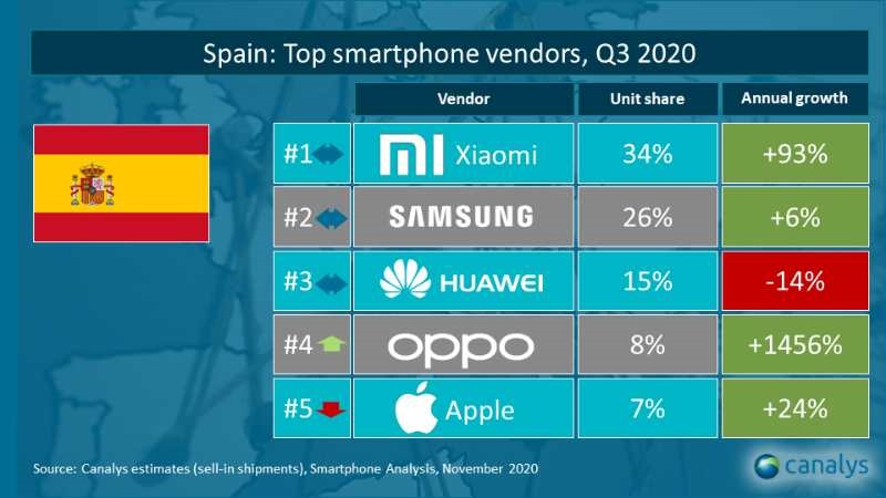 Canalys近日发布的全球分区域智能手机市场Q3季报显示,小米智能手机市占率进入全球前三同时,在欧洲市场继续迅猛增长,在西欧市场进入前三名,实现翻倍式增长,同时继续稳居西班牙市场第一。