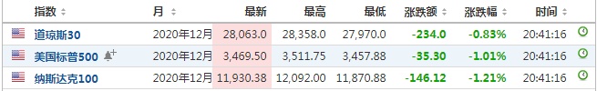 美联储除了维持货币政策不变,将利率维持在0%至0.25%的最低水平,债券购买计划也没有变化。美联储主席鲍威尔表示,近期经济活动反弹面临的两个突出风险:一是卫生事件感染人数不断增加,二是财政刺激措施影响消退后,家庭储蓄正在耗尽。鲍威尔称,目前还未决定是否将紧急贷款工具延长到12月31日之后。