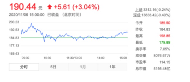 昨日市值首次突破5000亿元的比亚迪股份(01211),11月6日股价继续上涨3.04%,收盘报190.44元,达到了5195亿元。从年初至今,比亚迪股价涨幅已高达295%。