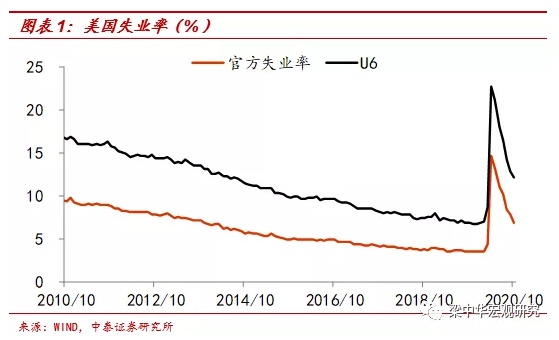 10月美国新增非农就业人数63.8万人,好于市场预期,9月上修为67.2万人;非农就业的增长仍得益于经济活动恢复下临时性失业的持续减少,不过新增就业人数已经连续4个月放缓。10月失业率为6.9%,较上月下滑1.0个百分点,连续6个月下滑;不过U6失业率仍高达12.1%。