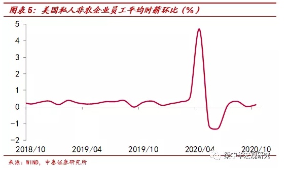 10月美国新增非农就业增长主要来自于服务业,服务业就业增长了78.3万人,占全部就业增长的123%;商品生产就业增长了12.3万人,贡献了19%;政府就业则减少了26.8万人,拖累了42%,较上月加剧,主因是流失了14.7万的人口普查员。
