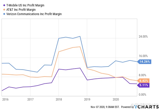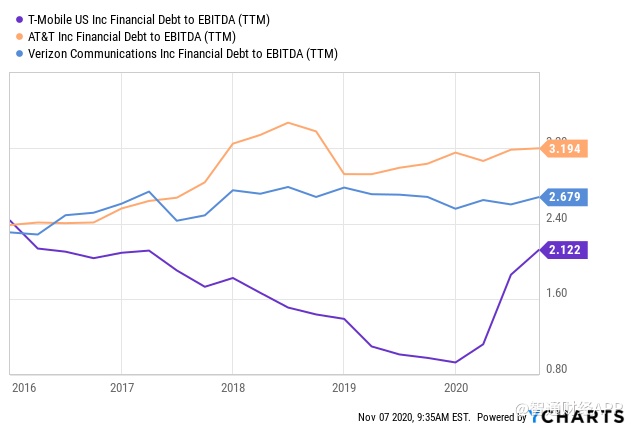 同时T-Mobile2020年债务的激增与现金流的减少几乎完全是收购Sprint的结果。随着时间的推移,整体盈利能力的提高,加上克制债券发行,将有助于T-Mobile资产负债表变得越来越灵活。