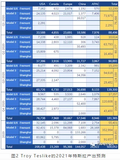 第一部分:产能。我们看特斯拉的业绩报告里面2019年Q3的定义,Model3是产能规划为15万台,到了2020年Q3这个数据拉到了25万的产能。其实整体估算的数据,2020年特斯拉在中国可能生产大约13万台,按照troy Teslike的预测和跟踪,Q4预估特斯拉能造5.24万台,大概在1.74万台左右(年化为20.96万台)。也就是说基本达到了2019年的目标,而2021年实际可能的是是在2020Q3的预估上优化出5万车的产能。
