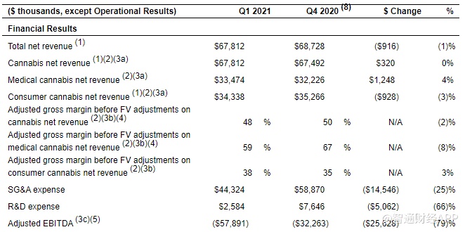 其中,医用大麻净营收3347.4万加元,环比增长4%;消费者大麻净营收3433.8万加元,环比下降3%。