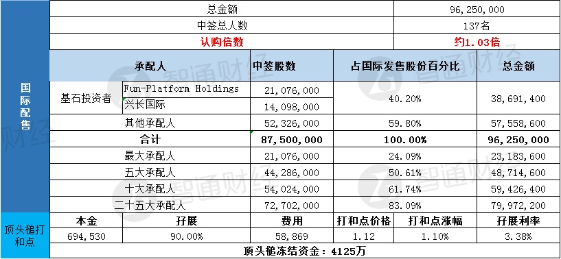 国际配售申购人数未披露,认购倍数约1.03倍。
