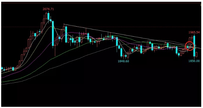 但是也没想到就只上涨到1965美元,无论是反弹的时间还是反弹的高度都比我预想的少多了。
