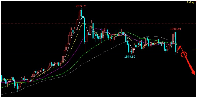 当然不排除黄金最后在1850美元守住了,然后再开始一波上涨,或者是横盘开始震荡,那么后面走势就复杂了。