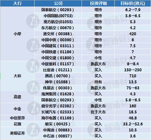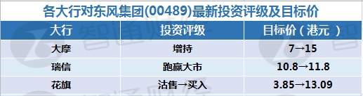 一、各大行对东风集团(00489)最新投资评级及目标价
