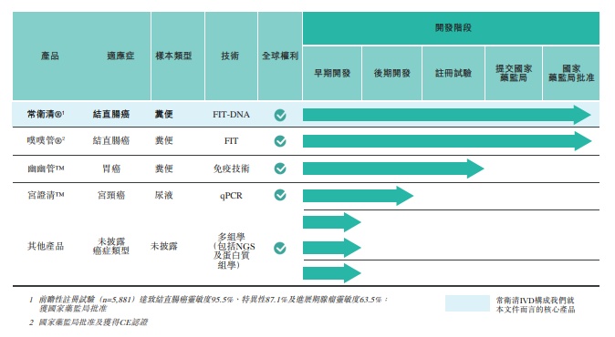 常卫清为中国首个且唯一获国家药监局批准的分子癌症筛查测试。常卫清的目标客户为中国120百万的结直肠癌高危人群,可让用户居家采集粪便样本。