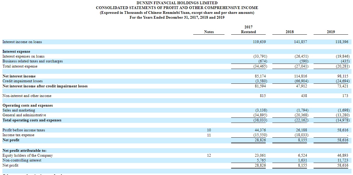 2019年全年贷款利息收入为1.18亿元(人民币,下同),2018年同期为1.42亿元,同比下降16.5%;净利润为5861.6万元,2018年同期为815.5万元,同比增长618.8%;每股收益为0.05元,上年同期为0.01元。