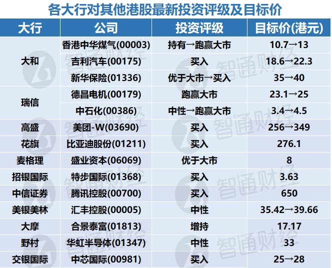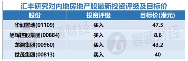 一、汇丰研究对内地房地产股最新投资评级及目标价