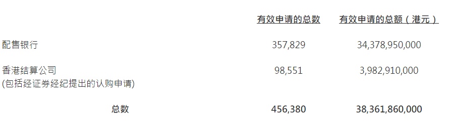 根据配售银行及香港中央结算有限公司(香港结算公司)所提供的认购资料,截至2020年11月5日下午2点认购期结束为止,香港特别行政区政府共收到456380份有效申请,申请的债券本金总额达383.6186亿港元。