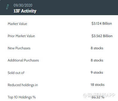 最新数据显示,景林资产三季度持仓总市值达31.24亿美元,上一季度总市值为35.62亿美元,环比下降12.3%。景林资产在三季度的持仓组合中新增了8只个股,增持了8只个股。同时,景林资产还减持了18只个股,清仓了9只个股。其中前十大持仓标的占总市值的 86.32%。