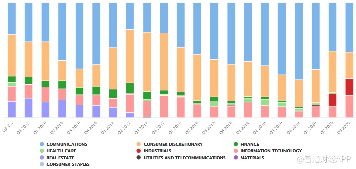 从行业来看,社交媒体相关个股依然是景林的重仓标的,占比达48.48%,上一季度为42.31%。其次是非必需消费品相关个股,占比为22.12%,上一季度占比为36.23%。另外,IT相关个股占比由上一季度的9.43%升至本季度的19.19%。工业个股占比位列第四,为14.63%,上一季度为10.71%。