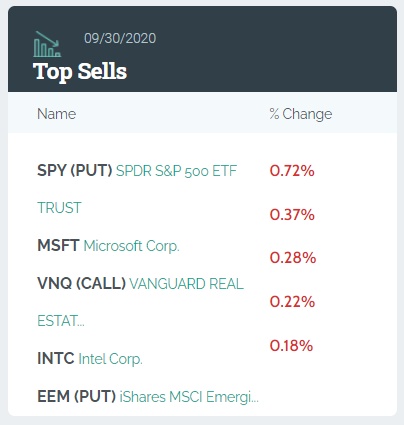 瑞银集团前五大卖出标的分别是:标普500指数ETF看跌期权(SPY.US,PUT)、微软(MSFT.US)、不动产信托指数ETF看涨期权(VNQ.US,CALL)、英特尔(INTC.US)、新兴市场ETF-iShares看跌期权(EEM.US,PUT)。