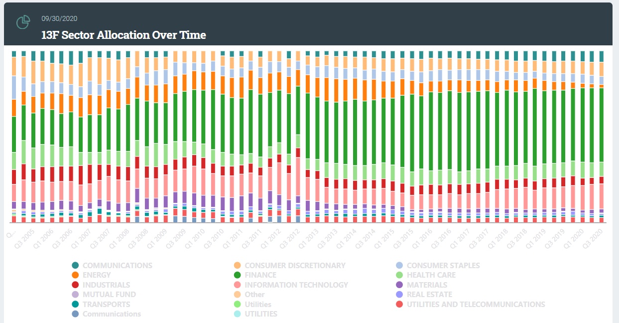 从持仓偏好来看,金融、IT以及医疗保健板块位列前三,占总持仓的比例分别为43.45%、14.94%和8.34%。