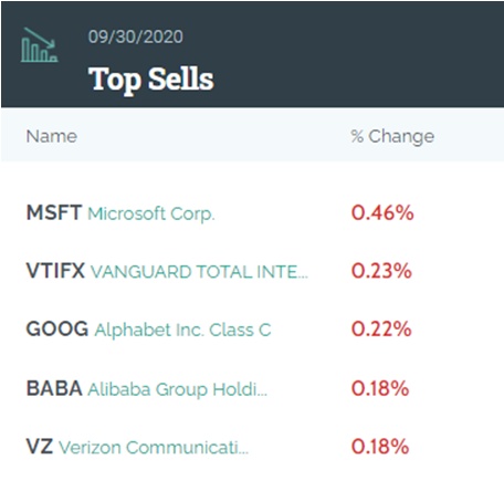 前五大卖出标的分别是:微软、VANGUARD TOTAL INTERNATIONAL BOND INDEX FUND-Institutional Shares(VTIFX)、谷歌(GOOG.US)、阿里巴巴(BABA.US)和Verizon(VZ.US)。