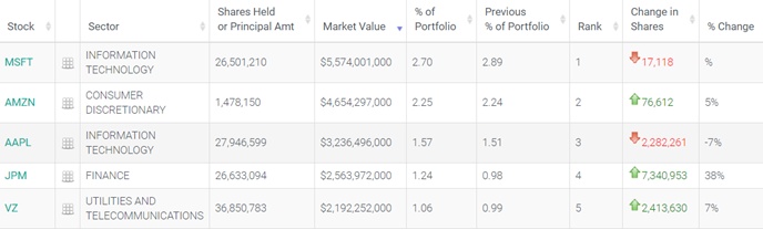 在前五大重仓股中,微软(MSFT.US)位列第一,持仓约2650.1万股,持仓市值约55.74亿美元。