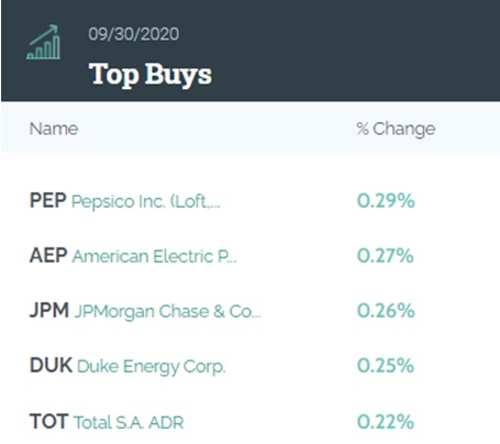 从持仓比例变化来看,前五大买入标的分别是:百事可乐(PEP.US)、美国电力(AEP.US) 、摩根大通(JPM.US)、杜克能源(DUK.US)和道达尔(TOT.US)。