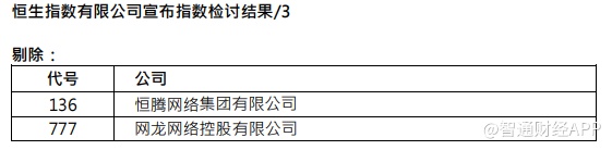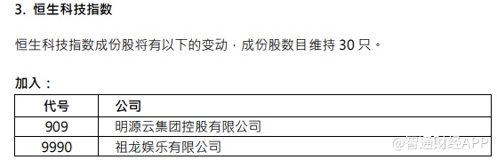 明源云(00909)、祖龙娱乐(09990)等将被纳入恒生科技指数成份股,恒腾网络(00136)等将被剔除。成份股数目维持30只。