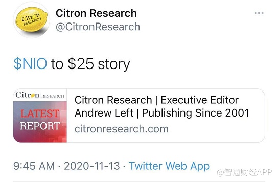 智通财经APP获悉,周五,香橼发布文章称蔚来(NIO.US)目标价应为25美元。