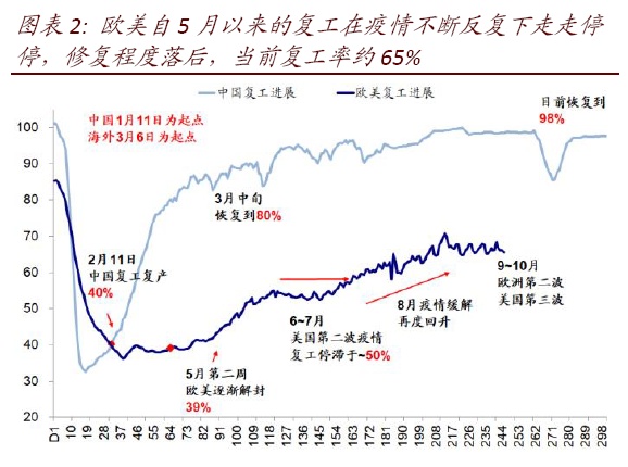 i. 短期内欧美卫生事件升级将继续拖累复工进展。