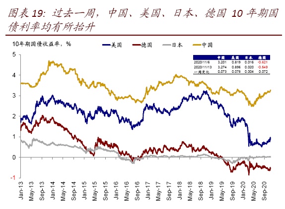 美国大选方面,自上周末主流媒体纷纷预判拜登胜选后,上周佐治亚和亚利桑那结果出炉进一步确认了这一结果,虽然特朗普尚未承认败选,但我们认为除非有大规模选举欺诈的证据,否则结果反转几无可能,大选的喧嚣预计也将逐渐落定。其影响主要体现在短中长三个层面:短期降低不确定性,与历次大选结果后市场普遍反弹的历史规律一致;中期拜登加分裂国会的结果意味着相对友好的政策仍有可能(如缩小规模的卫生事件刺激与温和的对外政策)但不友好的政策(如加税和加强监管)则会受到共和党参议院的制衡;更长期影响取决于拜登执政战略方向,但推进效果和进展目前仍有很大变数。