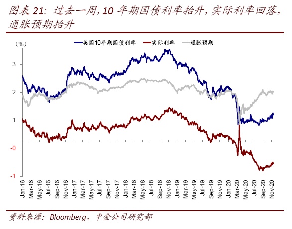 上周一(11月9日)辉瑞(PFE.US)和BioNTech(BNTX.US)发布公告称,对照试验显示候选疫苗有效性超过90%,并将于11月第三周向美FDA提交紧急使用授权。这一消息触发了全球范围内风险资产普遍上涨以及板块风格间的轮动,避险资产普遍回调、10年美债利率一度逼近1%。成长股叠加科技巨头反垄断政策担忧则明显落后。