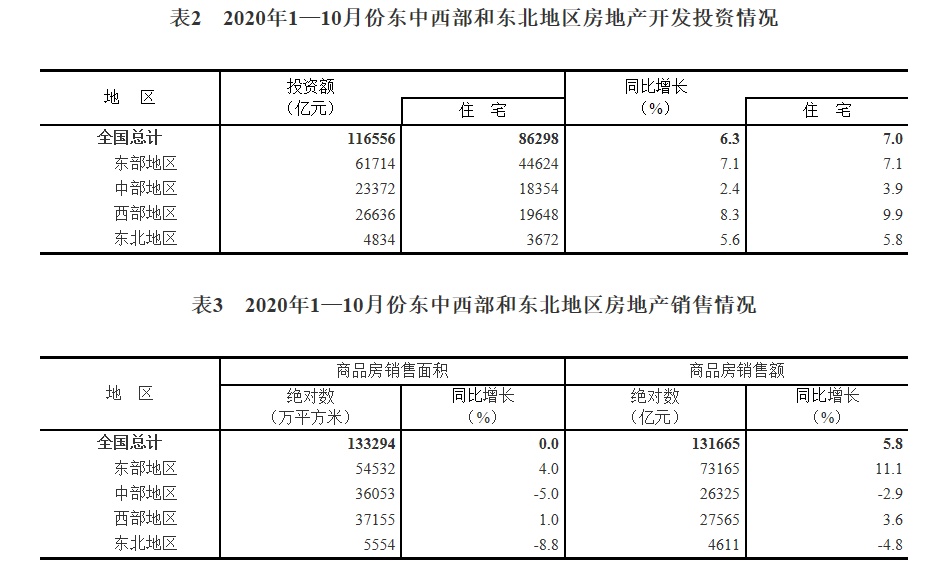 1—10月份,东部地区房地产开发投资61714亿元,同比增长7.1%,增速比1—9月份提高0.6个百分点;中部地区投资23372亿元,增长2.4%,增速提高1.5个百分点;西部地区投资26636亿元,增长8.3%,增速提高0.2个百分点;东北地区投资4834亿元,增长5.6%,增速提高1.2个百分点。